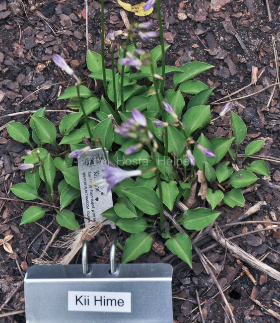 teardrop shaped leaves. Purple flowers bloom in July. Mikiko Lockwood in an article on The Hosta Library titled,