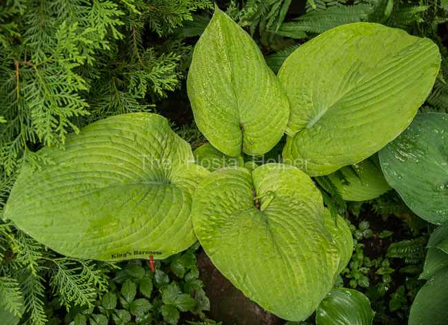 Originated by Herb and Gladys King of Wisconsin, this non-registered cultivar is of unidentified parentage. It is a large size hosta with slightly corrugated light yellow to chartreuse colored foliage.