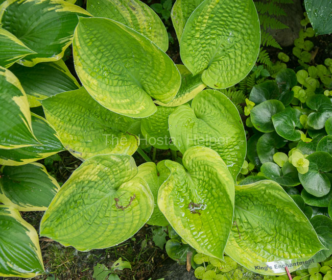 Originated by Herb and Gladys King of Wisconsin, this non-registered cultivar is of unidentified parentage. It is a medium size hosta with light green foliage that has irregular streaks of creamy yellow color between the veins.