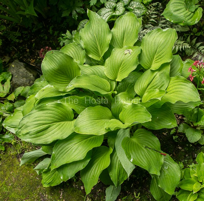 Originated by Herb and Gladys King of Wisconsin, this non-registered cultivar is of unidentified parentage. This large size hosta has long, narrow green leaves that are slightly shiny on top. They have slightly wavy edges.