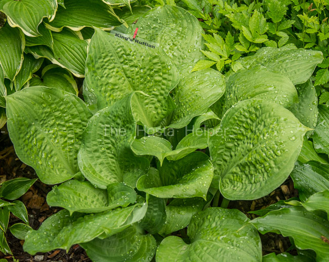 Originated by Herb and Gladys King of Wisconsin, this non-registered cultivar is of unidentified parentage. It is a medium large hosta with heavily corrugated dark green leaves and an unruly habit.