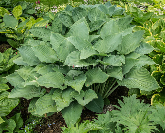 Originated by Herb and Gladys King of Wisconsin, this non-registered cultivar is of unidentified parentage. It is a large size hosta with blue-green foliage and an upright growth habit. The leaves are slightly wavy on the margins.