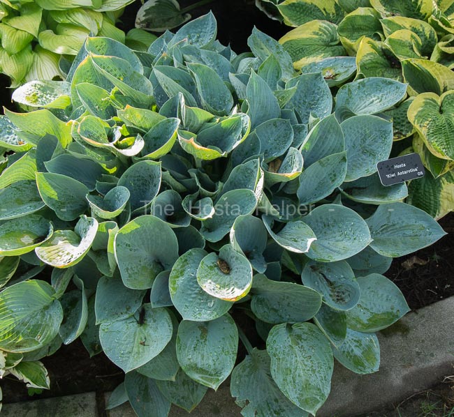 This is a non-registered cultivar from Barry Sligh of Taunton Gardens in New Zealand. It is a small size hosta that is a seedling of H. 'Blue Jay'. The plant has intensely blue-green leaves and bears white flowers.