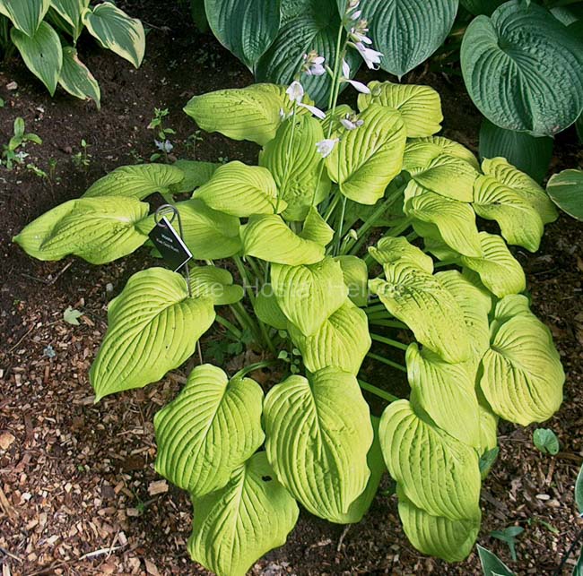 hostas. It forms a medium size (15 inches high by 24 inches wide) mound of slightly wavy,