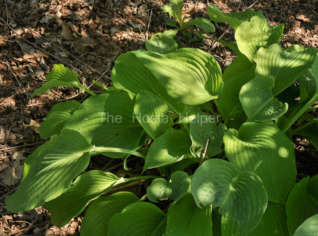 According to The Hostapedia by Mark Zilis (2009), "...seems more likely a cross of H. hypoleuca x H. 'Elegans' (or one of its seedlings). 'Elegans' would provide the genetic background to produce the larger mound size, earlier flowering, and greater number of vein pairs."