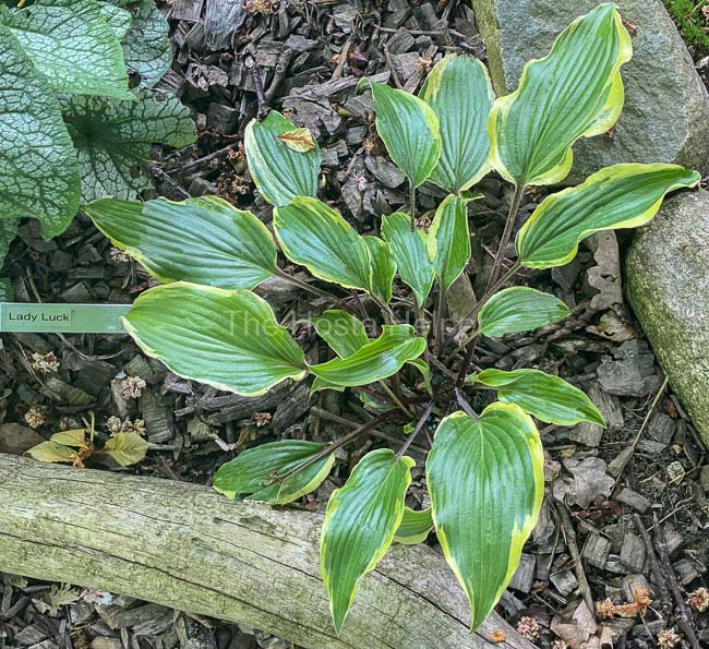 Danny Van Eechaute of Belgium registered this fast growing, medium size (12 inches high by 19 inches wide) sport of H. 'Lady Gaga' in 2014. The medium green foliage has creamy white marginal variegation. Its foliage is moderately wavy, ovate and shiny on top. Pale lavender, tubular flowers bloom from August into September. It sets viable seeds.