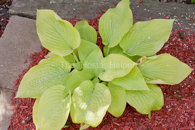 It is the result of a cross of H. 'Newberry Gold' × H. 'Sun Glow' that grows into a medium to large size plant. The ovate