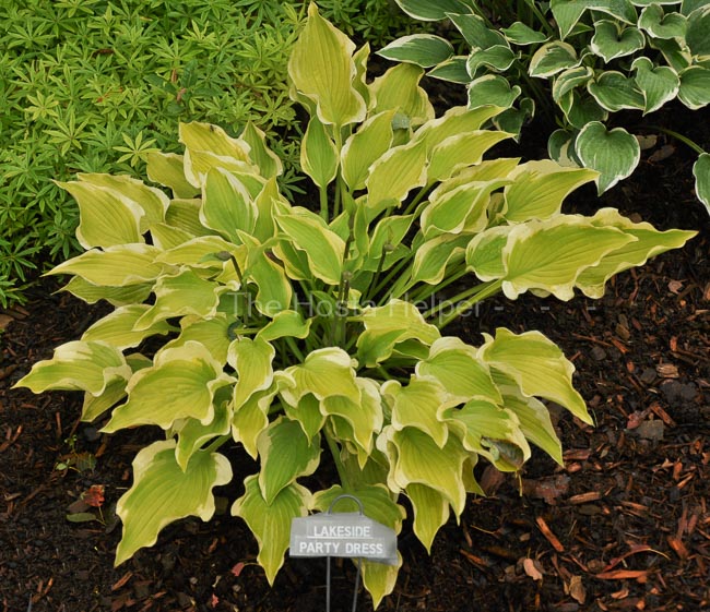 According to The Hostapedia by Mark Zilis (2009), "Its flowing mound habit and heavily rippled foliage give 'Lakeside Party Dress' the appearance of constant motion."