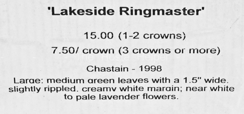 a cross of a streaked form of H. 'Lakeside Roy El' × H. 'Lakeside Ripples' was registered in 1998 by