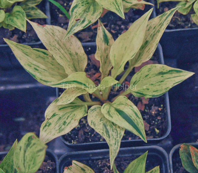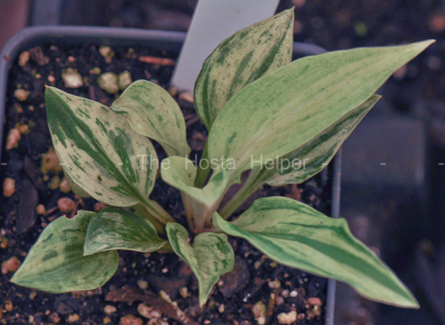 Lakeside Acres Nursery in Tennessee. It is a small size hosta that is a sport of H. 'Lakeside Zinger'.