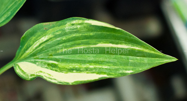 variegation with creamy white specks. They are lance shaped, slightly wavy and have a tapered base. Its tubular near white