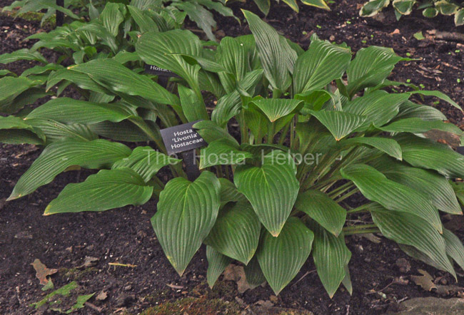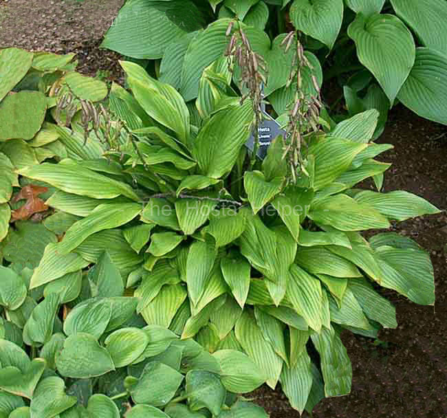 The fast growing medium size (17 inches high by 20 inches wide) mound of light green foliage. The leaves are slightly rippled and have pink petioles with the color extending up into the leaf. Deep purple flowers bloom from July into August on scapes up to 26 inches tall followed by seeds in purplish pods.