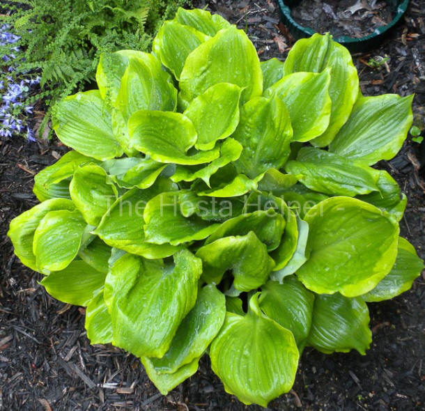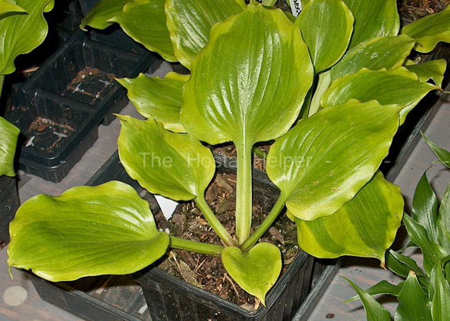 and Substance' has wavy, cupped leaves and wide yellow margins. It