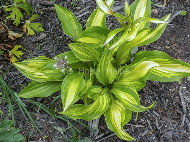 inches tall. According to the registration materials: "...striking variegation, pretty flowers,