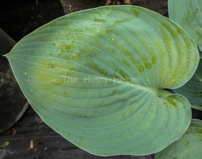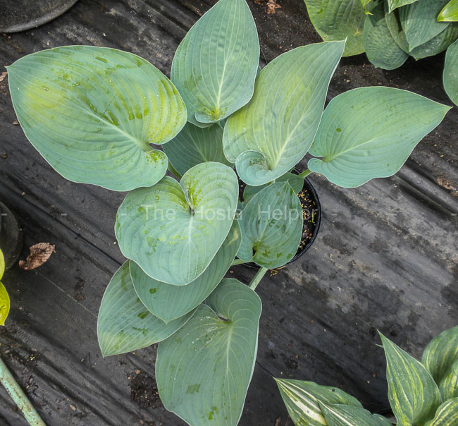 Dr. Dick and Jane Ward of Ohio registered this small size (8 inches high by 18 inches wide) hybrid of H. 'Ice Palace' × an unidentified hosta in 2012. The medium green foliage is nearly round, flat and dull on top.