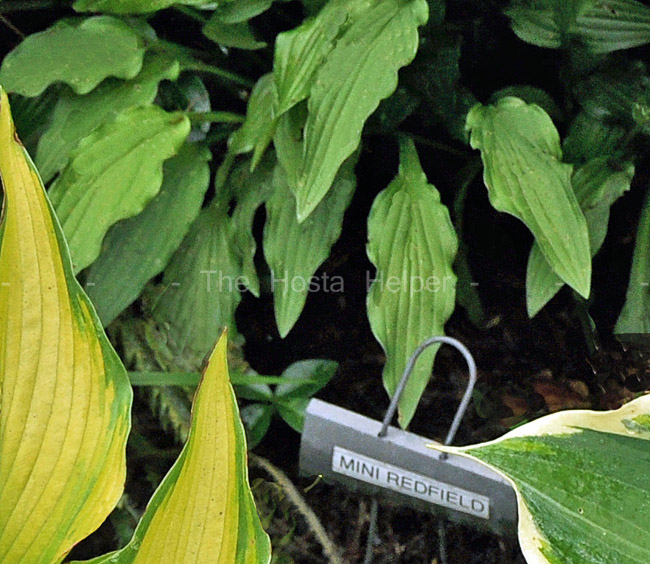 All we have is the photo taken in a tour garden which shows a small size, green hosta.