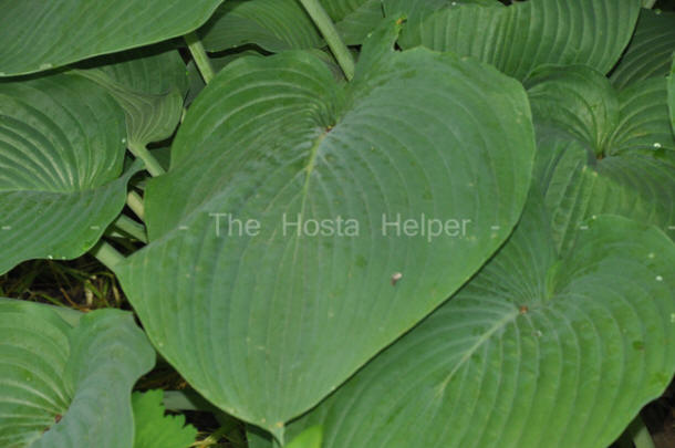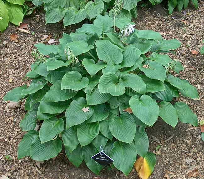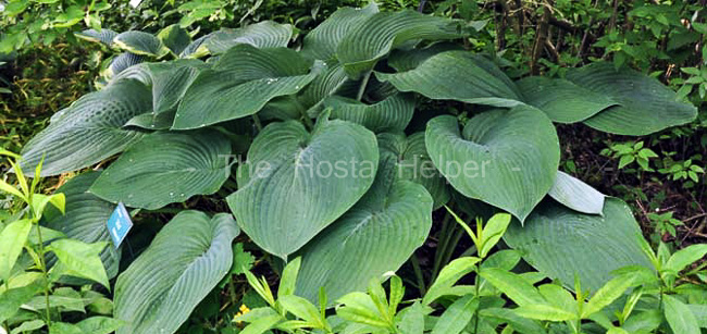 This form of H. 'Sieboldiana' came from Japan and was registered by The American Hosta Society on behalf of the originator, Dr. Fumio Maekawa in 2002 and re-registered with new data in 2018. As with others of this type, it forms a large size (20 inches high by 45 inches wide) upright mound with leaves that are slightly cupped, slightly folded, slightly corrugated and slightly shiny on top.. Near white flowers bloom from June into July on scapes 14 inches tall followed by viable seeds.