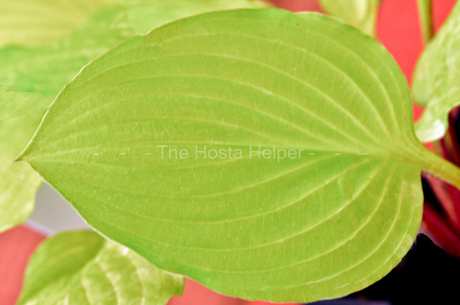 size hosta with light green leaves and bright red