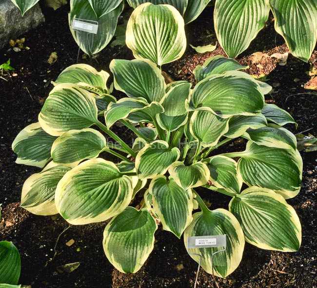 Hans Hansen of Minnesota registered this cross of H. 'Dorothy Benedict' × H. montana 'Aureomarginata' in 2004. This 30 inch high, giant size plant bears pale lavender flowers in late June.