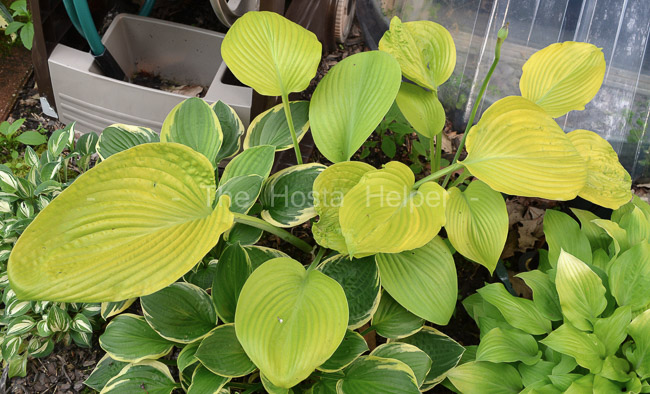 giant size (30 inches high by 40 inches wide) cultivar is a hybrid of H. 'Fat Cat'.