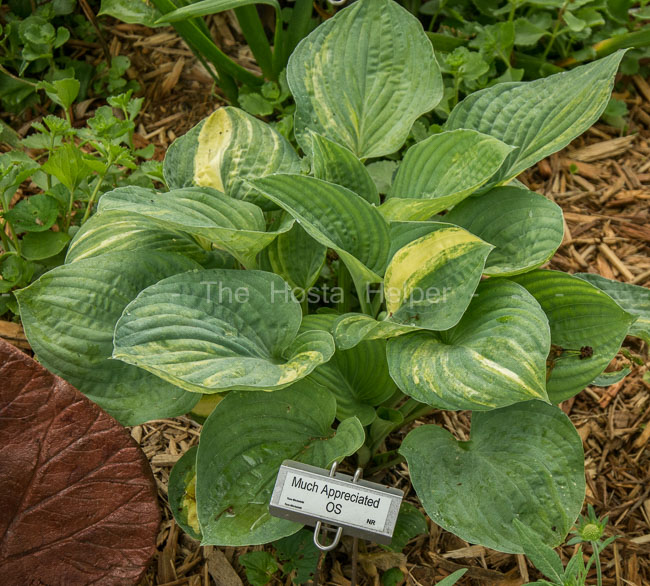 Originated by Tom Micheletti of the Hosta Patch in Illinois, this non-registered cultivar is a sport of H. 'Thank You'. It is a large size hosta with broadly ovate, moderately corrugated foliage. Pale purple flowers bloom from mid-July into August.