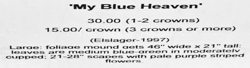 both of Michigan jointly registered this plant in 1997. It is a medium size (15 inches high) plant similar to H. 'Blue