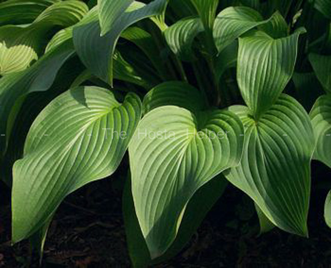size hosta with slightly wavy, dark green leaves. It has