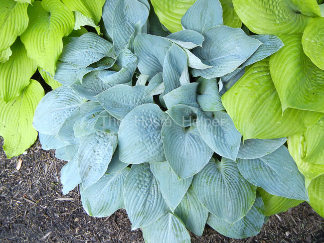 blue-green, broadly ovate, slightly wavy and dull on top.