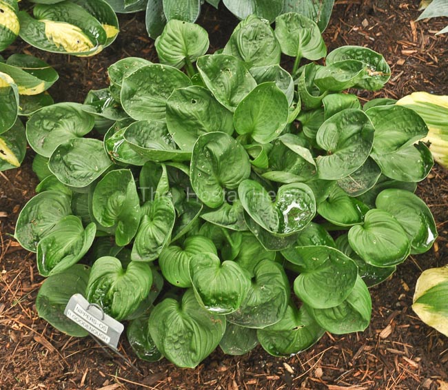 Rick Goodenough of Massachusetts originated this cross of H. 'Fascination' × H. 'Black Beauty' and registered it in 2006. It is a medium size plant with puckered, unruly foliage. Pinkish flowers bloom in July.