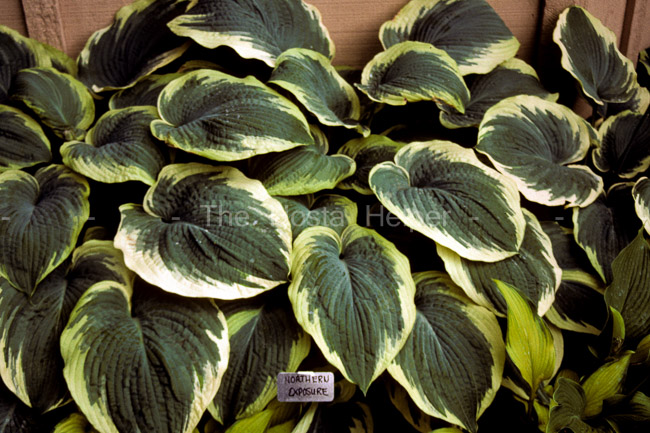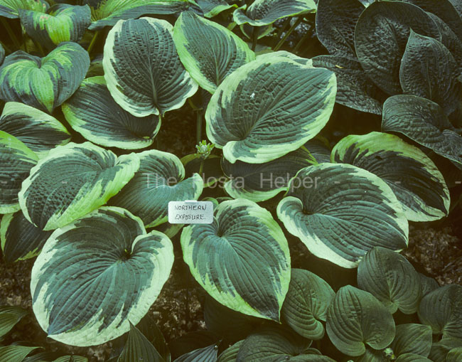 An article by Warren I. Pollock in The Hosta Journal (1992 Vol. 23 No. 2) states that, "What's the problem with 'Northern Halo'? Simply, there are several forms. The form that people seem to want most has been difficult to obtain and lately has commanded a premium price." Pollock goes on to explain that the differences in forms of 'Northern Halo' have mostly to do with the width of the margin variegation and the size and shape of the leaves which varied from the original plant. These variations have probably occurred due to lack of quality control at various TC labs. To solve the problem, the originator of H. 'Northern Halo' has propagated it with the "proper" form and sells it as H. 'Northern Exposure'."