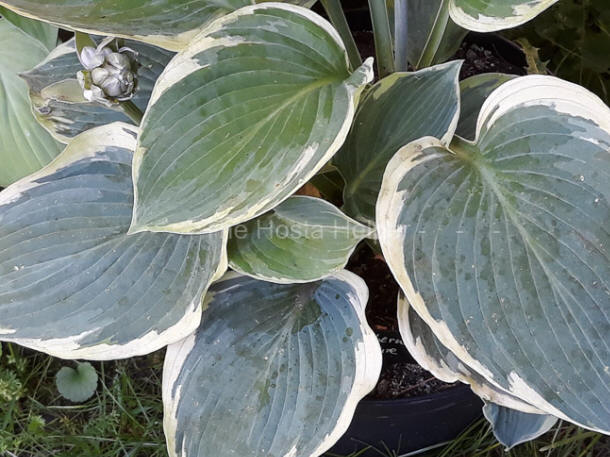 This is considered one of the best known sports (tissue culture ) of the classic H. 'Elegans'. It forms a giant size (36 inches high by 70 inches wide) mound with typical H. 'Sieboldiana' characteristics but is unique for it bold, white marginal variegation. This cultivar was registered by Walters Gardens, Inc. of Michigan in 1997.