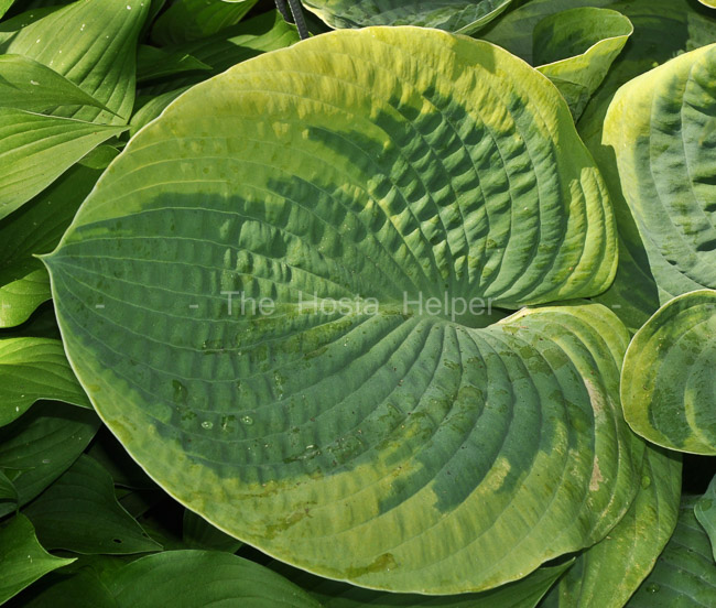 are many registered 'Frances Williams' lookalikes including H. 'Aurora Borealis', H. 'Squash Edge', 'Holly's Green and Gold', 'Golden Circles' and