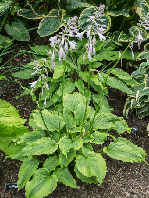 It is a green hosta with a yellow marginal variegation.