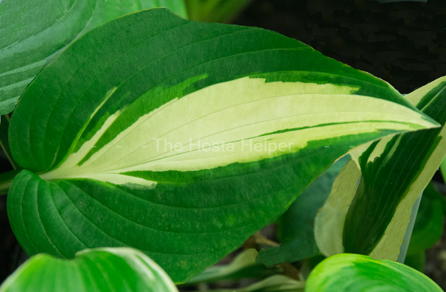 foliage is green with a yellow marginal variegation. It has better than average substance and is moderately wavy. The