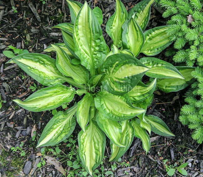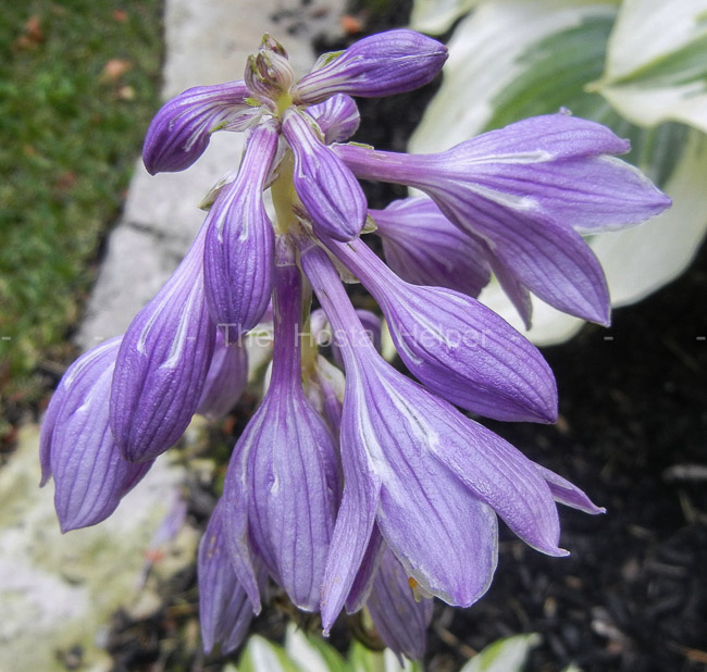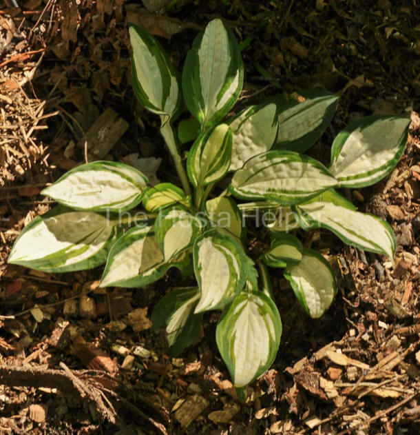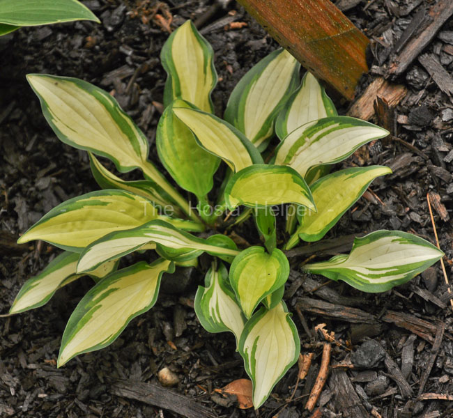 Hostas of Wisconsin) in 2002. It grows into a small size (6 inches high by 10 inches wide) plant and has dimpled foliage. Purple