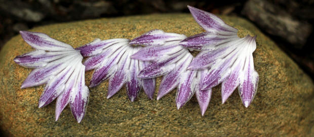 the inside, the tepals are white with lavender colored