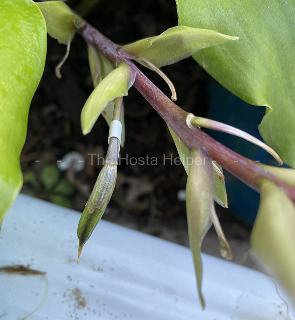 Scapes are reddish purple with olive green bracts and