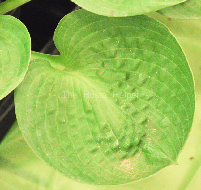 This sport of H. 'Popcorn' was registered by Bill Silvers of Georgia in 2006. Its medium size mound has heavily corrugated foliage with thick substance. The near white flowers bloom in July.
