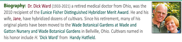 A hybrid of H. 'Breeder's Choice' × H. 'Frances Williams', this cultivar was originated by Dr. Kevin Vaughn of Massachusetts but registered by Dr. Dick Ward of Ohio in 2009.