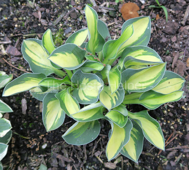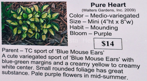 reports 'Pure Heart' and 'Desert Mouse' are the same hosta. Also, 'Holy Mouse Ears' comes up with plain blue-green leaves; after a month or so, a
