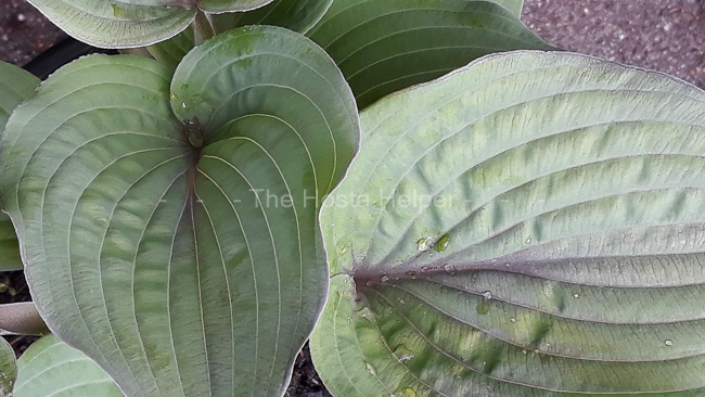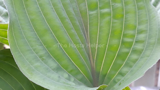 cultivar is of unidentified parentage. It is a large size hosta about 18 inches high by 40 inches wide with shiny