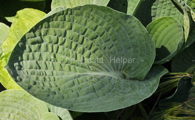 This hybrid of H. 'Tokudama' × H. 'Crinkle Cup' was registered by Eldren Minks of Minnesota in 1980. It grows into a large size hosta about 18 inches in height and 37 inches in width. The foliage is unruly, broadly ovate and has thick substance.