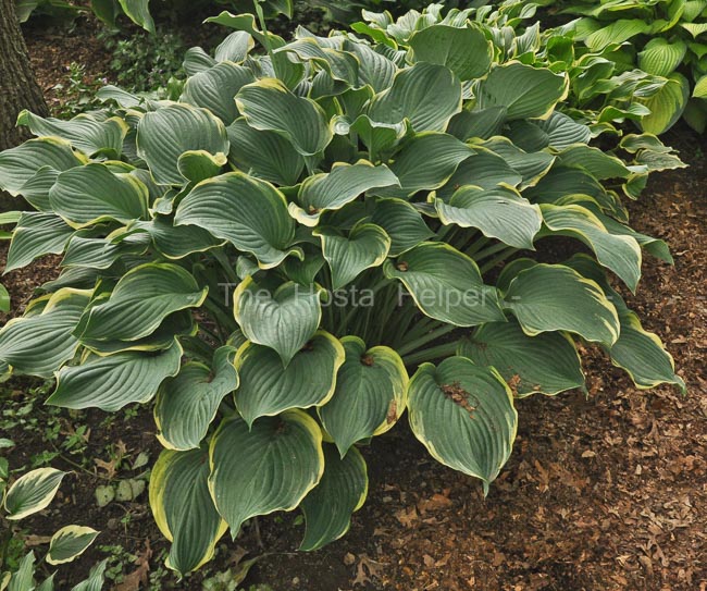 According to The Hostapedia by Mark Zilis (2009), this cultivar "...matures as a spectacular, vase-shaped mound of foliage but with variegation. The width of the leaf margin varies from plant to plant..."