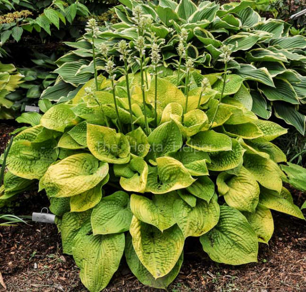 inch wide, large size clump with foliage that is slightly cupped, moderately