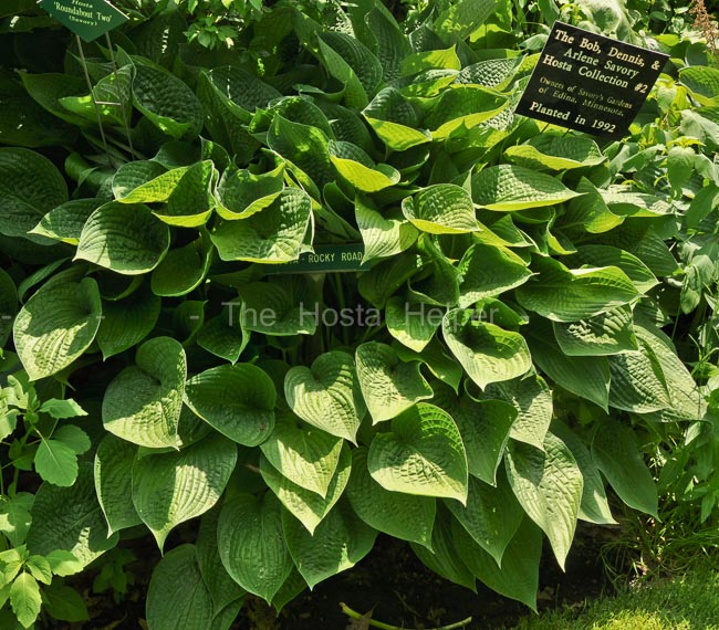 cupped foliage with a distinct tip. It bears pale purple flowers