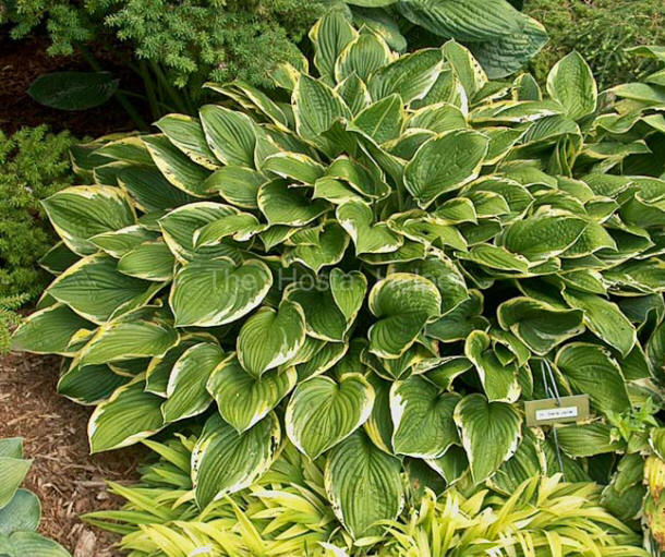 Registered by Dr. Dick and Jane Ward of Ohio in 1997, this is a reversed sport of H. 'Gold Standard'.  It forms a large size (20 inches high) mound of ovate shaped foliage with average substance. from mid-July into August, it bears pale lavender flowers on 36 inch tall scapes.