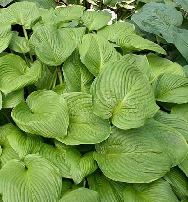 This is an introduction of Eunice V. Fisher of Wisconsin that was registered on her behalf by The American Hosta Society in 1986. It forms a large size (23 inches high) mound of broadly ovate, shiny green foliage. The leaves are slightly cupped, heart shaped at the base and moderately corrugated. Pale lavender flowers on extremely tall flower scapes bloom from late June into July. The parentage is unknown.