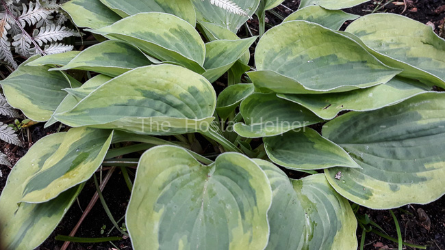 50 inches wide with wavy, ovate shaped foliage. The pale