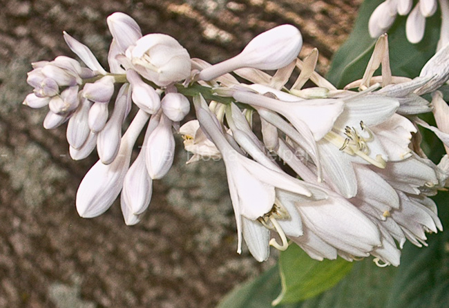 corrugated with thick substance. Pale lavender flowers on tall (38