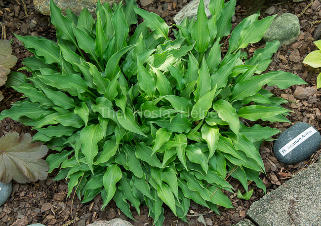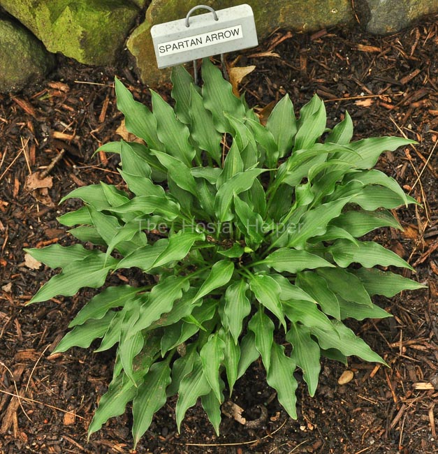 Listed for sale as a hybrid of H. 'Permanent Wave', this cultivar was registered in 2000 by Randy Goodwin as being of unidentified parentage. It forms a small size hosta about 9 inches tall by 14 inches wide with lance shaped leaves. The very pale purple flowers bloom in July on 2 foot high scapes.